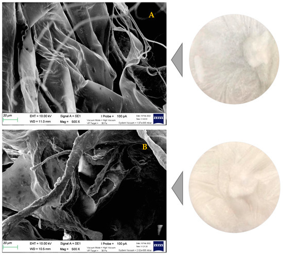 Morphological evaluation of the AASC, LASC, and CASC samples was carried out using a scanning electron microscopy (Carl Zeiss, model MA 10, Germany). Prior to scanning, all acid-extracted collagens were sputter-coated with the gold for 5 min using a coater device (JEOL JFC-1200, Tokyo Rikakikai Co., Ltd., Tokyo, Japan). Next, all coated samples were imaged with a magnification (500×) [52].