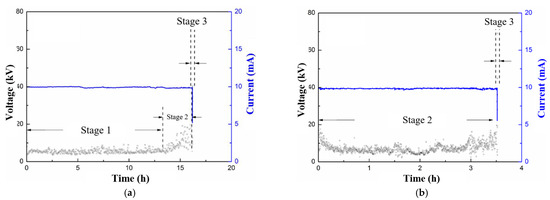- Gao, Y.; Liang, X.; Liu, Y.; Bao, W.; Li, S.; Wu, C. Effect of electrical stress on glass fiber reinforced polymer used in high voltage composite insulator under wet environment. Compos. Sci. Technol. 2018, 155, 151–159. [Google Scholar] [CrossRef]