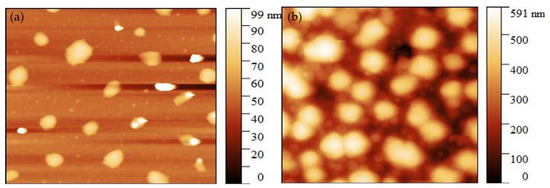 The images obtained by the atomic force microscope (AFM) of the CMOISW are shown in Figure 5 The average diameter for the CMOISW was about 30 ± 2 nm. Figure 6b shows that for the thermally cured CMOISW, the particle size increased to 300 ± 15 nm. The increase in the particle dimensions could be related to the particles fusing during the curing process.