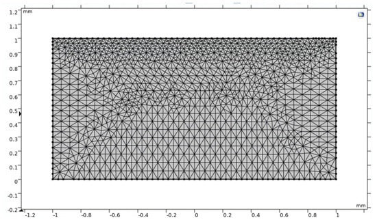 COMSOL model initial mesh including increased density near the surface due to modeled adsorptive surface phenomena.