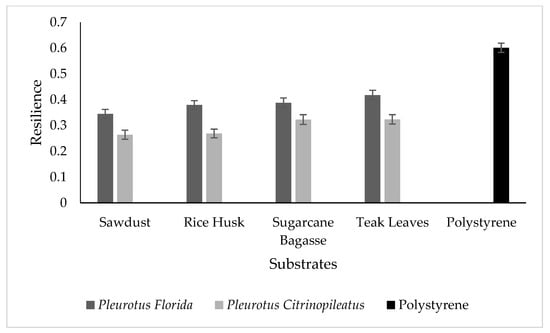 Resilience for different mushroom species of fungal foam in various types of substrates and polystyrene as the control.