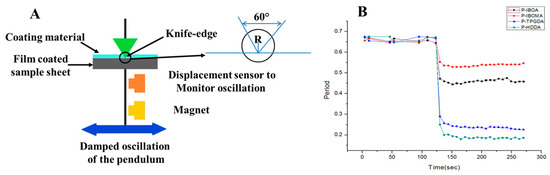 (A) Rigid body type pendulum in RPT instrument: Knife edge-type for the curing process. (B) Curing behavior of UV-curable coatings.