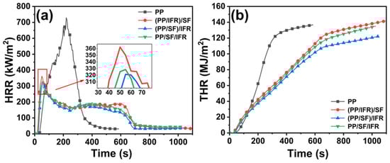 3.1. Flammability of PP/SF Flame-Retardant Composites