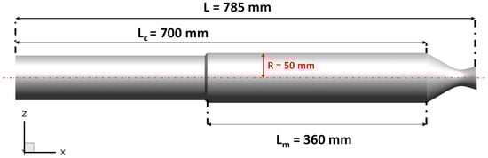 The resultant pressure field alongside the combustion chamber, which is the output for the Ansys Fluent simulation, is used as an input load for the structural analysis, performed in Abaqus, to evaluate the strength and integrity of the cylindrical skirt. For this study, the nozzle part was not taken into account. The skirt was modeled as a 3D cylindrical shell body with a constant radius R, length (ref. Figure 2) and a thickness of 3.684 mm. The external layer of the SRM shell has a radius of 6.842 mm. S8R Abaqus elements with six degrees of freedom and eight-node quadratic doubly thick curved shell elements with a reduced integration scheme were adopted. The structural analyses, in spite of previous ones, were assessed with a three-dimensional layout in order to catch instability phenomena that could be triggered on the body, such as buckling.