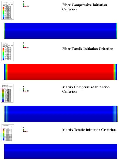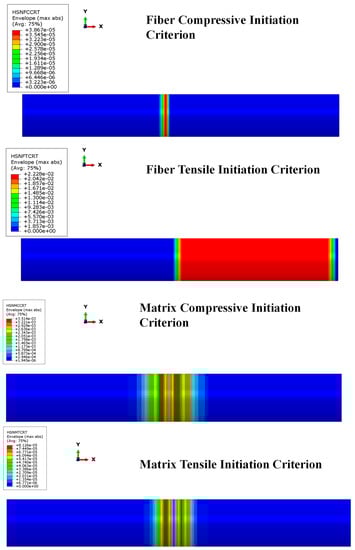 where represents the stress components, and are the allowable tensile strengths, and are the allowable compressive strengths, and , , and are the allowable shear strengths. If , no failure is detected, while if , the ply or fiber and/or matrix failure occurs.