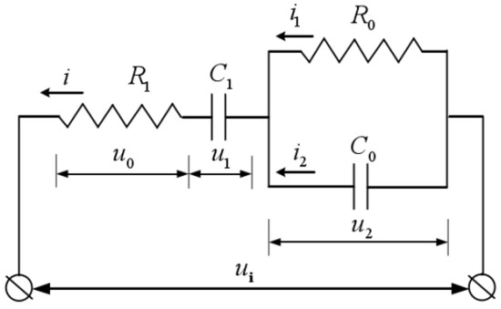 The voltage across the parallel part of R0 and C0 and the current on each branch are ,, and , respectively, and are calculated as follows: