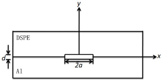 To facilitate the analysis and calculation of gap deformation, we approximately simplified the actual interface to a plane interface model (Figure 6). The interface gap width is set to 2a, and the depth is d, under the assumption that both the width and depth are smaller than the material thickness, and the depth is much smaller than the width. The z-axis direction was not considered, hence the conversion of bond material interface gap deformation into plane strain for continued analysis.