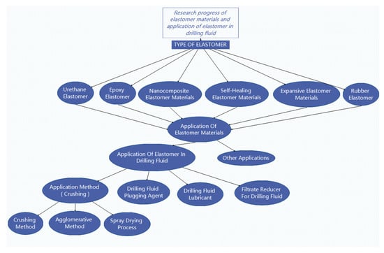 Traditional elastomers can be roughly divided into two categories according to the different crosslinking methods: one is the chemical crosslinking of macromolecular chains through covalent bonds (such as polysulfide bonds, carbon-carbon bonds and bonds), represented by vulcanized rubber; the other is the physical crosslinking of flexible macromolecular chains through crystalline microdomains (except for hydrogen bonds), represented by thermoplastic elastomers (TPE) [1]. With the progress of research, supramolecular elastomers based on hydrogen bonding [2], viscoelastic polymers [3] and magnetic response liquid crystal elastomers [4] have been produced. This paper reviews the research progress of elastomer materials and their application in drilling fluids, and introduces the application of elastomers in drilling fluids, as shown in Figure 1.
