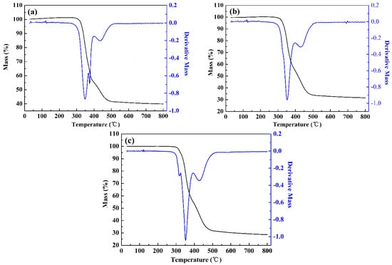 TG (black) and DTG (blue) curves of PBPE-1 (a), PBPE-2 (b) and PBPE-3 (c).