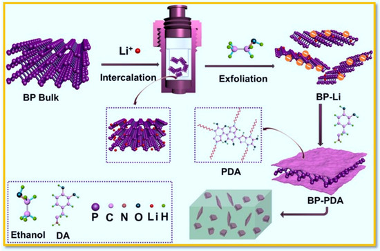 - Baboukani, A.R.; Khakpour, I.; Drozd, V. Liquid based exfoliation of black phosphorus into phosphorene and its application for energy storage devices. Small Struct. 2021, 2, 2000148. [Google Scholar] [CrossRef]