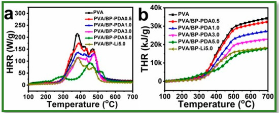 | Composite Material | BP Content [wt%] | PHRR | THR | Residual Char [wt%] | Ref. |