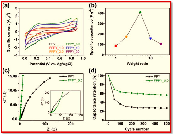 - Bose, S.; Kim, N.; Kuila, T.; Lau, K.; Lee, J.H. Electrochemical performance of a graphene-polypyrrole nanocomposite as a supercapacitor electrode. Nanotechnology 2011, 22, 295202. [Google Scholar] [CrossRef]