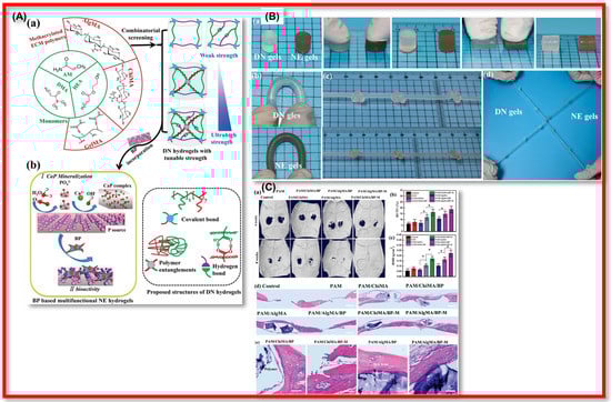 - Wang, Z.; Zhao, J.; Tang, W.; Hu, L.; Chen, X.; Su, Y.; Zou, C.; Wang, J.; Lu, W.W.; Zhen, W.; et al. Multifunctional nanoengineered hydrogels consisting of black phosphorus nanosheets upregulate bone formation. Small 2019, 15, 1901560. [Google Scholar] [CrossRef]