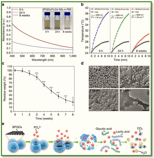 - Shao, J.; Xie, H.; Huang, H.; Li, Z.; Sun, Z.; Xu, Y.; Xiao, Q.; YU, X.F.; Zhao, Y.; Zhang, H.; et al. Biodegradable black phosphorus based nanospheres for in vivo photothermal cancer therapy. Nat. Commun. 2016, 7, 12967. [Google Scholar] [CrossRef] [PubMed]