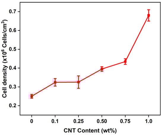 Cell density of the CNT/EVA foams as a function of CNT content.