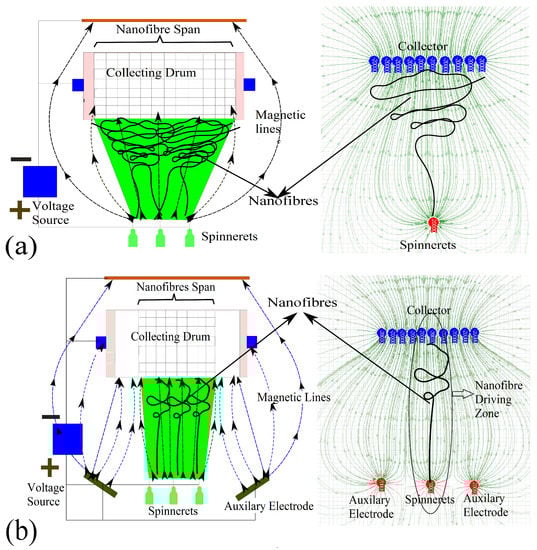 - Zhao, J.; Liu, H.; Xu, L. Preparation and formation mechanism of highly aligned electrospun nanofibers using a modified parallel electrode method. Mater. Des. 2016, 90, 1–6. [Google Scholar] [CrossRef]