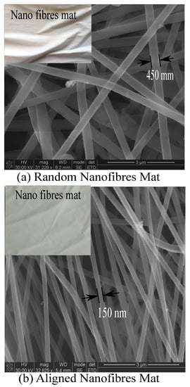 Research works [7,8] show that continuous nanofibers have a higher molecular orientation with a better degree of crystallinity and, thus, they improve the properties of the interlaminar regions. Wang et al. [9] cited that continuous nanofibers could improve the mechanical properties along a particular direction and promote load-bearing capabilities. These results expounded the innovative ideas in manufacturing aligned and continuous nanofibers in the form of nanomats. These nanomats could develop a bridging mechanism within the interlaminar regions and be suitable interlaminar reinforcements for glass fiber hybrid composites. The continuous-aligned nanofibers (CANFs) mats will be thin, light in weight, and will not increase the weight of final composites. Moreover, they can reduce the length scale mismatch between the macroscale fibers and the polymer matrix molecular chains. In addition, these nanomats could be collected directly over the fiber mats and thus reduce the processing time/cost.
