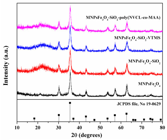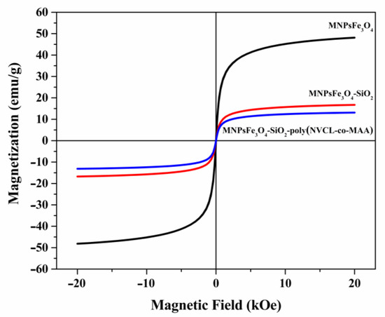 - Karimzadeh, I.; Aghazadeh, M.; Ganjali, M.R.; Doroudi, T.; Kolivand, P.H. Preparation and characterization of iron oxide (Fe3O4) nanoparticles coated with polyvinylpyrrolidone/polyethylenimine through a facile one-pot deposition route. J. Magn. Magn. Mater. 2017, 433, 148–154. [Google Scholar] [CrossRef]