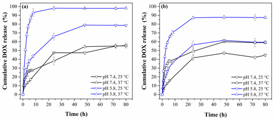 2.8. In Vitro DOX Release Studies