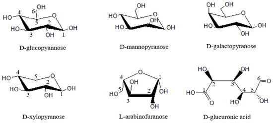 Main structural units of hemicellulose.