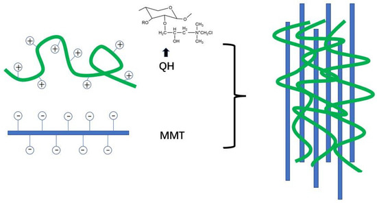 Schematic representation of organic-inorganic composite films prepared by electrostatic interaction between QH and MMT.