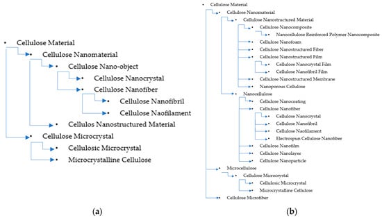 Cellulose material taxonomies (a) classification by ISO/TS 20477-2017 and (b) modified classification used in this review.