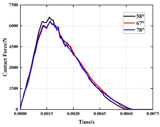 Comparison of the contact force history of the impactor under different concave angles.