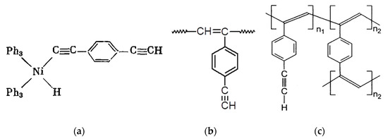 - Zhan, X.; Yang, M. Polymerization of p-diethynylbenzene catalyzed by (π-C5H5)(PPh3)Ni(C≡CC6H4C≡CH). Eur. Polym. J. 2001, 37, 1649–1654. [Google Scholar] [CrossRef]