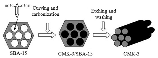 - Zhang, B.; Zhou, Q.; Wang, Y.; Song, N.; Ni, L. Synthesis of ordered mesoporous carbon using m-Diethynylbenzene as a new precursor. Mater. Lett. 2017, 189, 317–320. [Google Scholar] [CrossRef]