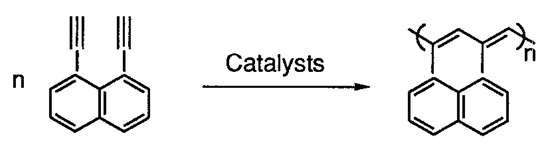 - Cho, H.N.; Kim, S.H.; Kim, C.Y. Synthesis and characterization of poly(1,8-diethynylnaphthalene). Polym. Bull. 1995, 34, 125–132. [Google Scholar] [CrossRef]