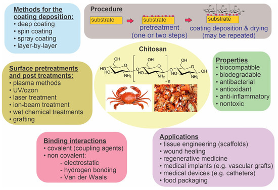 Chitosan’s characteristics, possible applications, and methods of coating preparation.
