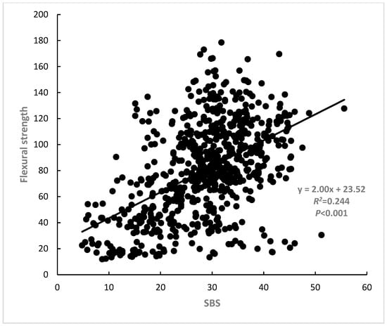 Correlation between flexural strength and shear bond strength to IPS e.max CAD (R2 = 0.24, p < 0.001).