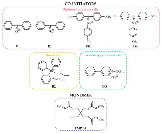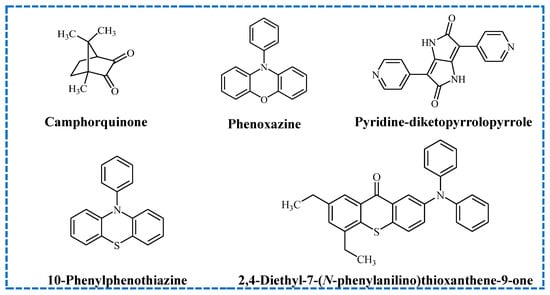 Examples of type II initiators used in radical polymerization reactions are presented in Figure 3 [62,67].