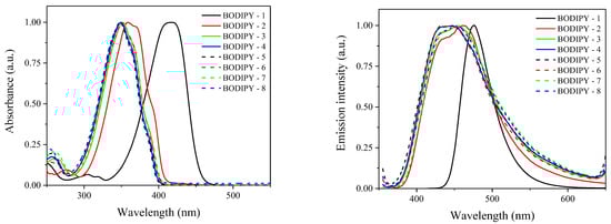 - Bumagina, N.A.; Antina, E.V.; Ksenofontov, A.A.; Antina, L.A.; Kalyagin, A.A.; Berezin, M.B. Basic structural modifications for improving the practical properties of BODIPY. Coord. Chem. Rev. 2022, 469, 214684. [Google Scholar] [CrossRef]