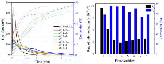 - Kabatc, J. The influence of a radical structure on the kinetics of photopolymerization. J. Polym. Sci. A Polym. Chem. 2017, 55, 1575–1589. [Google Scholar] [CrossRef]