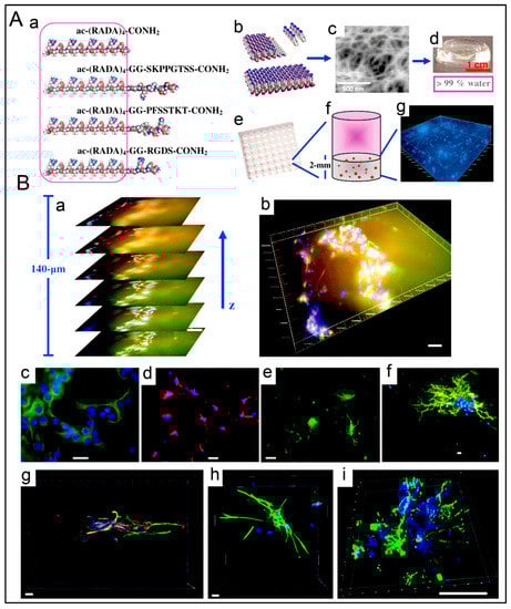 - Cheng, T.-Y.; Chen, M.-H.; Chang, W.-H.; Huang, M.-Y.; Wang, T.-W. Neural stem cells encapsulated in a functionalized self-assembling peptide hydrogel for brain tissue engineering. Biomaterials 2013, 34, 2005–2016. [Google Scholar] [CrossRef]