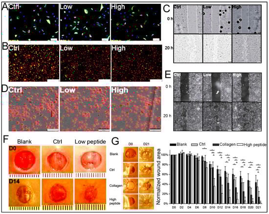 - Kim, J.E.; Lee, J.H.; Kim, S.H.; Jung, Y. Skin regeneration with self-assembled peptide hydrogels conjugated with substance P in a diabetic rat model. Tissue Eng. Part A 2018, 24, 21–33. [Google Scholar] [CrossRef]