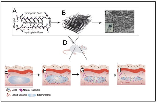 - Moore, A.N.; Silva, T.L.L.; Carrejo, N.C.; Marmolejo, C.A.O.; Li, I.-C.; Hartgerink, J.D. Nanofibrous peptide hydrogel elicits angiogenesis and neurogenesis without drugs, proteins, or cells. Biomaterials 2018, 161, 154–163. [Google Scholar] [CrossRef]