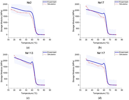 The FEM was implemented to simulate the dynamic response of the samples in a temperature regime. The viscoelastic characteristics of the PLA material were obtained by fitting the experimental curve to the Prony series, the time–temperature superposition method was applied. A comparison between the experiment and simulation curves showed that the values of the storage modulus in the range of glass transition temperature varied, but the curves showed a similar nature.