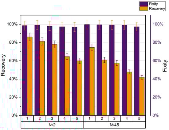 The shape memory and shape fixity coefficients of printing modes no. 2 and no. 45 are presented in Figure 11.