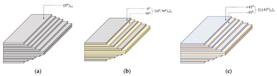 Illustration of laminate stacking sequence: (a) UD, (b) CP, and (c) AP.