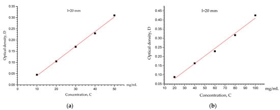 The optical density data for the tested solutions with unknown europium and scandium ion concentrations were reported. We found the unknown concentration corresponding to each signal after obtaining the value of the analytical signal (D) and utilizing the provided calibration curves (Figure 5). The optical density (D) of solutions containing europium and scandium ions was measured using a Jenway-6305 spectrophotometer in order to calculate the concentrations of europium(III) and scandium(III) ions. Each measurement was taken three times. The sorption degree was calculated using the following Equation (3) [] (p.4):