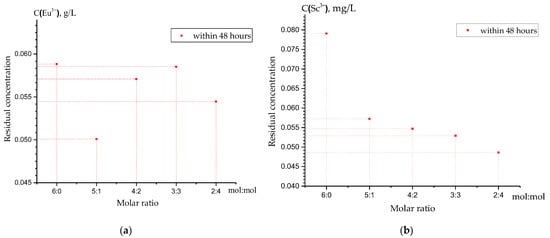 ICP-OES analysis of the residual concentration of (a) Eu3+ and (b) Sc3+ ions in a solution after 48 h of sorption.