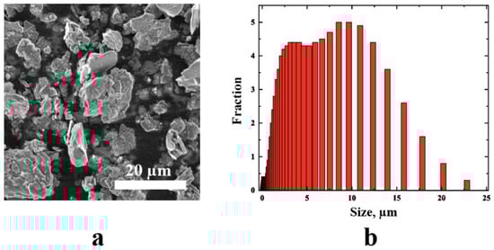 The morphology and particles size of BN were studied using a scanning electron microscopy (SEM) Quattro S (Thermo Fisher Scientific Inc., Waltham, MA, USA). To obtain the statistics on particle sizes, the SEM images of the particles were analyzed using the ImageJ software, which allows the aggregation of the statistics on particle sizes from several images.