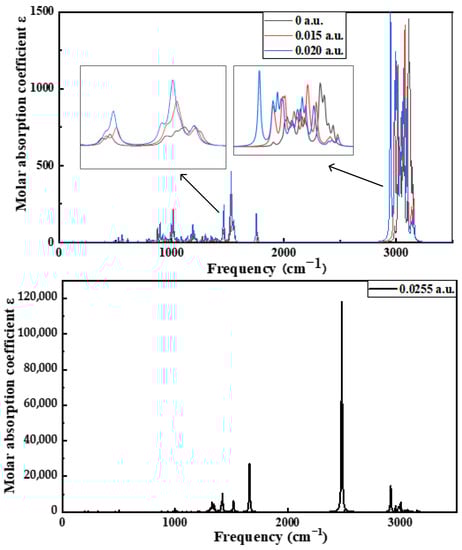3.4. Molecular IR Spectra under Different Electric Field Intensities