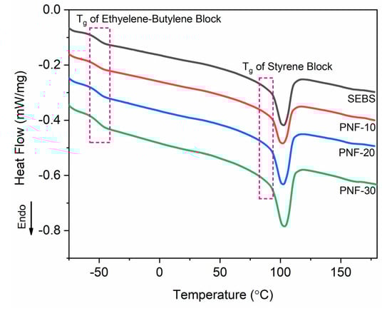 The glass transition temperature (Tg) of the PNF/SEBS composites.