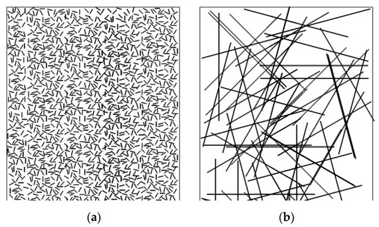 A schematic diagram of the distribution of SCFs with lengths of 100 (a) and 2000 (b) µm.