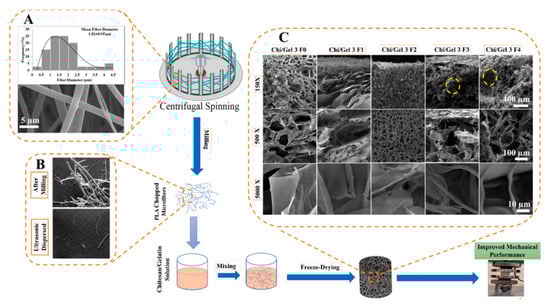 - Eftekhari-Pournigjeh, F.; Saeed, M.; Rajabi, S.; Tamimi, M.; Pezeshki-Modaress, M. Three-dimensional biomimetic reinforced chitosan/gelatin composite scaffolds containing PLA nano/microfibers for soft tissue engineering application. Int. J. Biol. Macromol. 2023, 225, 1028–1037. [Google Scholar] [CrossRef]
