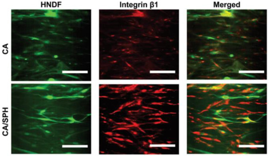 Nanoscale fibrous scaffolds should exhibit higher surface area which can offer an ideal template for cells for seeding, migrating, growing, differentiating, etc. In addition, the pace at which such a structure degrades should be comparable to that at which real tissue regenerates [1]. For natural tissue regeneration to be effective, new fibrous structures must be developed with distinct designs that promote cell implantation and cell proliferation. The creation of reproducible and biocompatible three-dimensional scaffolds with large pore sizes produced by centrifugal spinning can extend the permeability and structural integrity of cell ingrowth compared to electrospinning resulting in bio-matrix composites for different tissue repairs and substitution processes. Development of such 3D scaffolds has been introduced for cell infiltration, migration, adhesion, and growth [30]. Cell adhesion is favored by fibers with smaller diameters when compared to large-sized fibers [33,86]. Recently, many investigations have been started to pay attention to making scaffolds with synthetic biopolymers or biodegradable polymer nanofibers. Biodegradable aliphatic polyester like polycaprolactone (PCL) [28], poly (D, L-lactic acid) (PDLLA) and animal-based gelatin [107] have been centrifugally spun to produce homogenous and sub-micrometer fiber for medical applications [75]. According to osteoblast cell viability tests, the PDLLA system can stimulate more robust cell responses [108]. Nanofibrous alginate scaffolds are biocompatible and low toxicity and they also possess reconfigurable size and mechanical characteristics making them potential candidates for skeletal muscle tissue engineering [20]. Alginate can be used with poly(lactic acid) (PLA) fiber to facilitate adhesion to the cellular matrix and prevent cell deformation, resulting in an increase in yield stress owing to pseudoelasticity. Due to the polymer’s gelation process and subsequent centrifugal spinning, alginate is uniformly distributed throughout the main polymer matrix. Therefore, alginate promotes the hydrophilicity of PLA, and therefore provides compatibility with the hydrophilic environment [31].