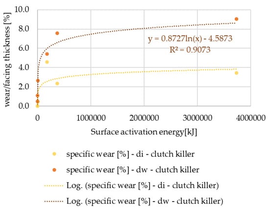 Specific wear values as a function of surface activation energy—clutch killer facings.